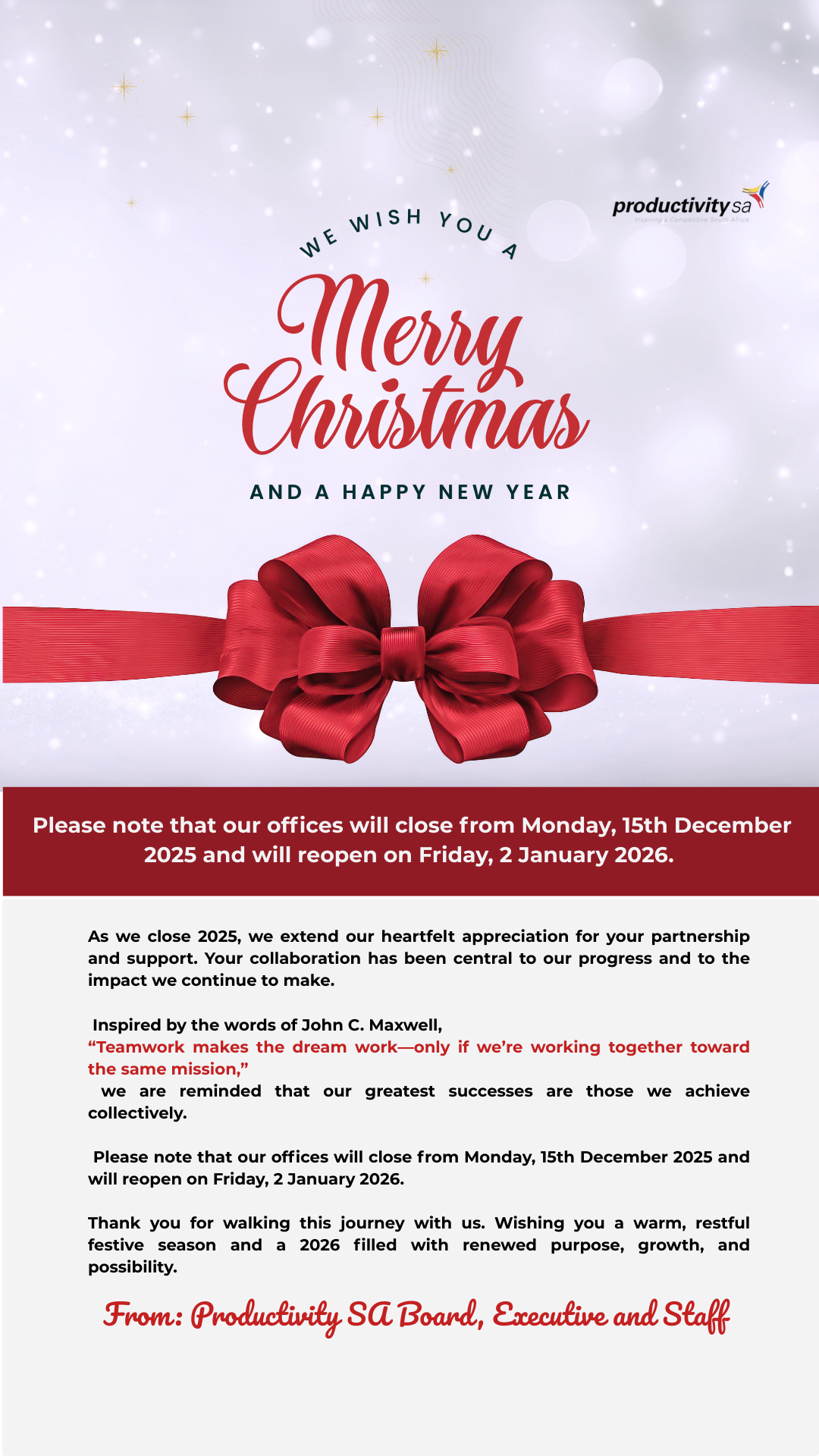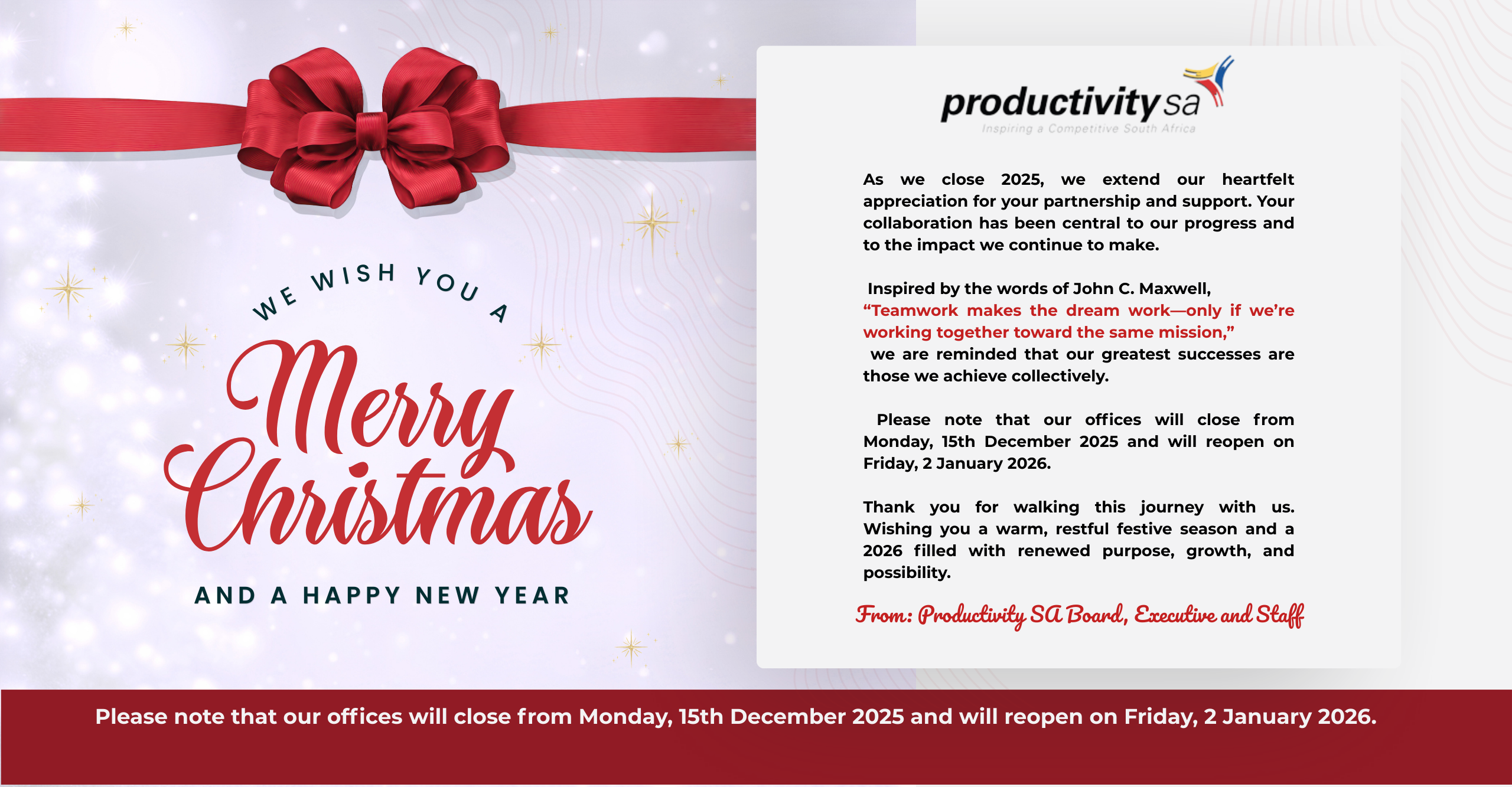 Driving productivity, enhancing competitiveness. Let's shape a competitive South Africa together!